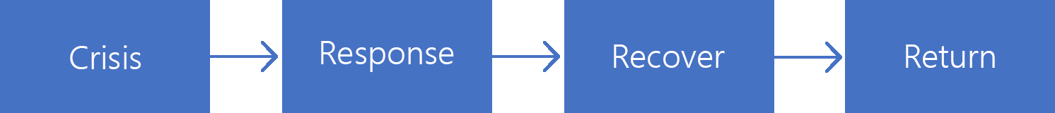 After the initial shocks have been felt, a recovery phase enables an organisation to slowly rebuild and address the impacts of the crisis.