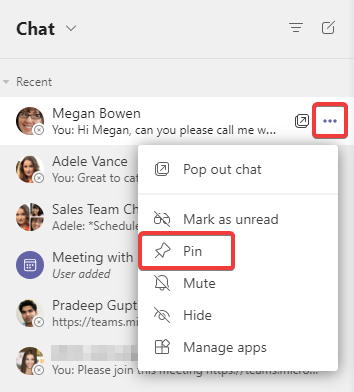 You can pin a Microsoft Teams chat message to improve awareness and provide the chat members with quick access to important content. Pinning messages will help your team stay in sync on what is and relevant in a timely manner. Currently, you can pin up to 15 messages.