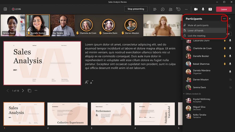 The extended functionality to lower all raised hands simultaneously is coming soon to Microsoft Teams. When available, meeting organisers and presenters will be able to select an option in the participant pane to lower all participant’s raised hands with a single click and move on with the presentation. This will help quickly remove raised hands after questions have already been answered.