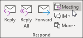 In the message list, select the message you want to respond to, and then on the Home tab, in the Respond group, select Meeting. Enter the location and start and end times as you would in any meeting request. You can also add or remove attendees, use Scheduling Assistant to find the most suitable meeting time, or add attachments. The header and body of the original message are included in the body of the meeting request.